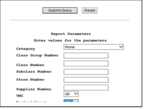 Click ‘Print’ and this window will appear below; Add in Supplier specific class group and Category, then ‘Submit Query’