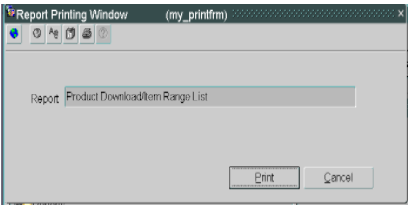 Go to; Reports – Buying Office and Merchandise Services – Miscellaneous – Product Download/Item Range List. You will then get window;